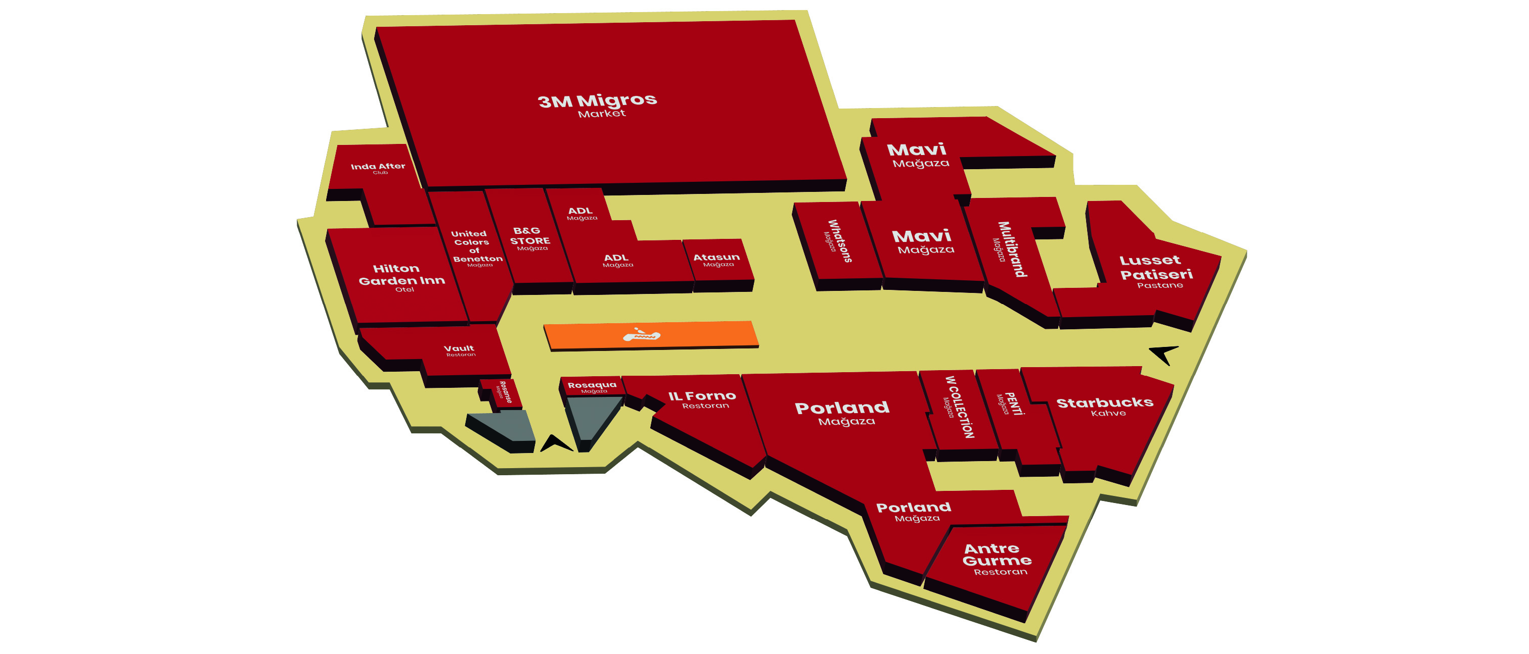 AVM içerisindeki mağaza konumlarını ve alan dağılımını detaylı olarak inceleyin
